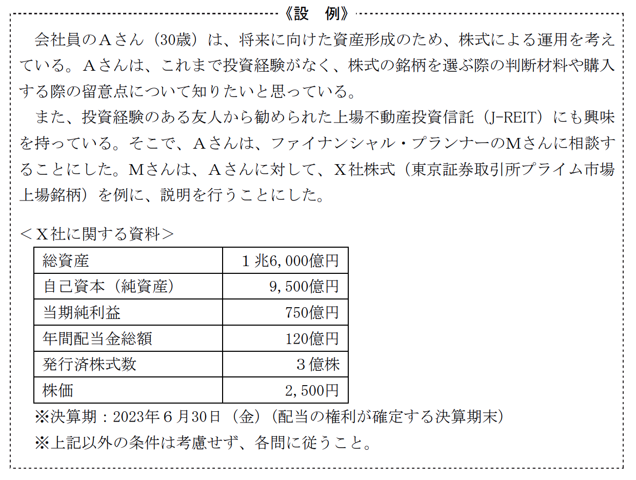 次の<設例>(2023年5月 問4~6まで共通)に基づいて、下記の各問に答えなさい。