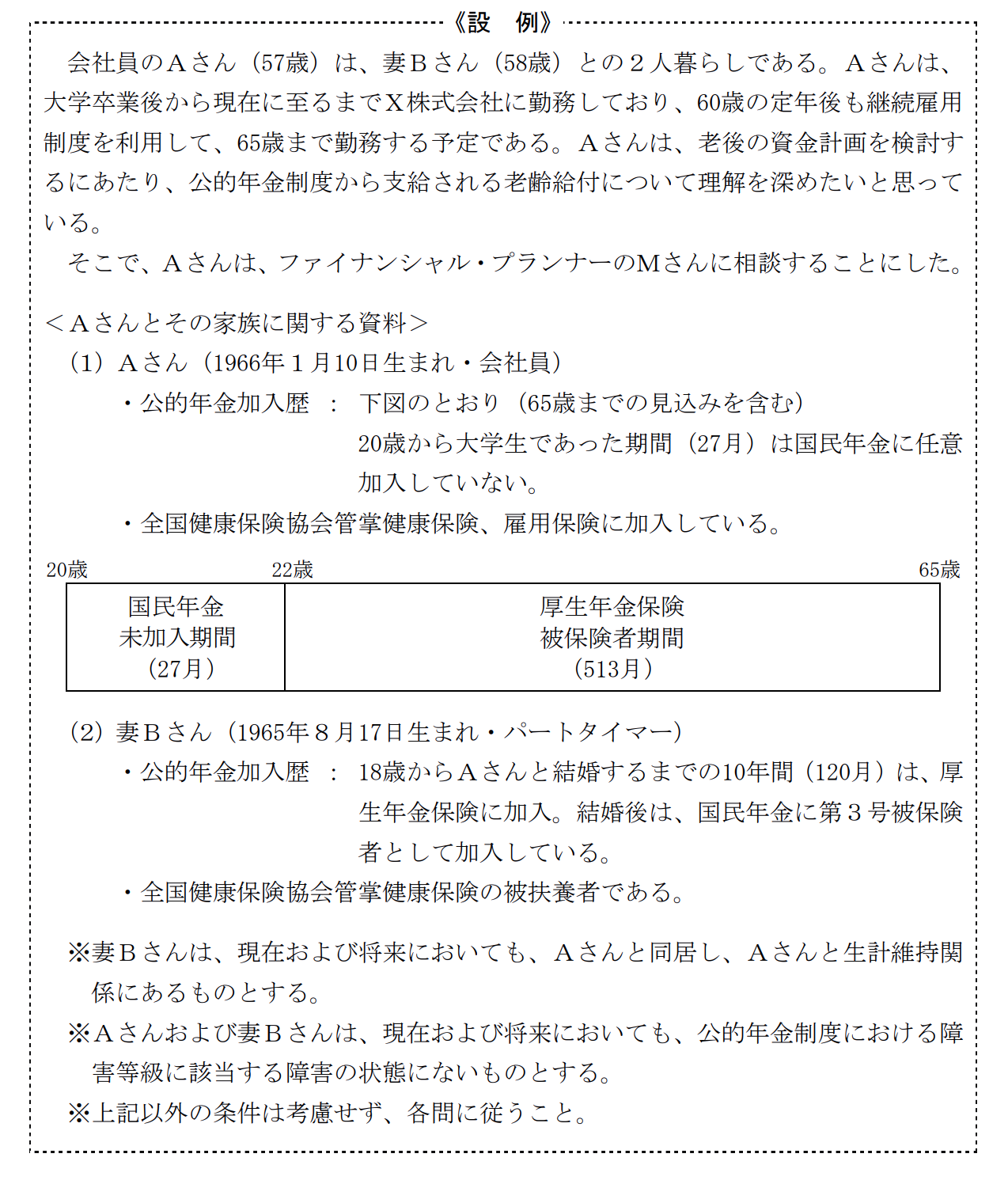 (FP試験 2023年9月 第1問 実技/保険顧客資産相談業務/公的年金)