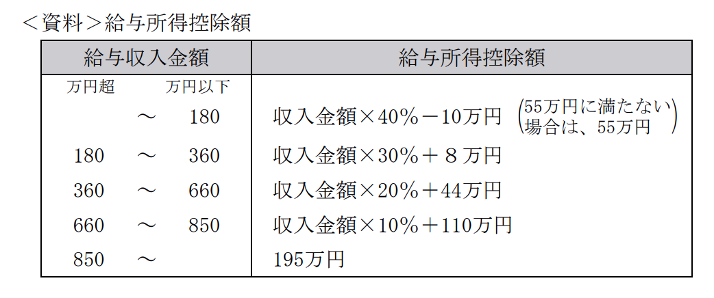 「給与所得=給与収入額-給与所得控除額」なので、