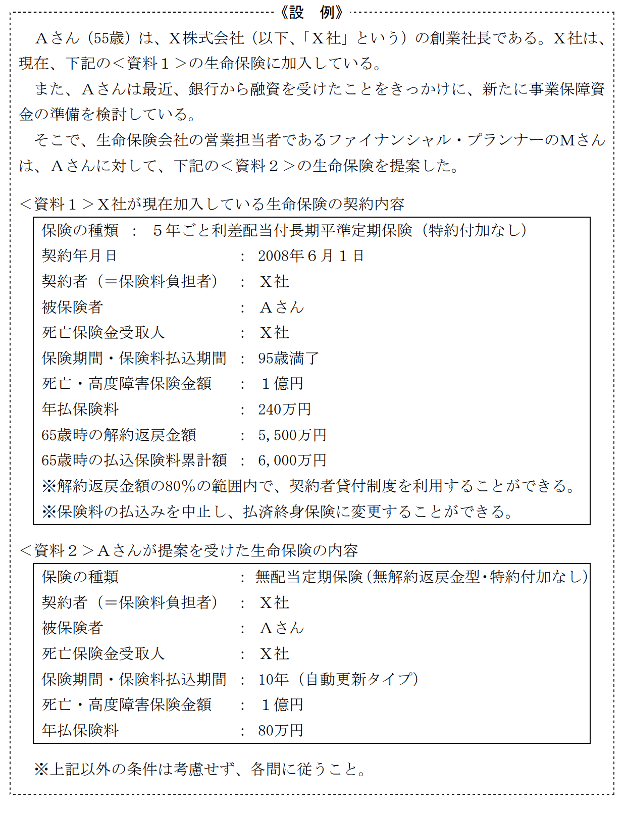 (FP試験 2023年5月 第8問 実技/保険顧客資産相談業務/生命保険)