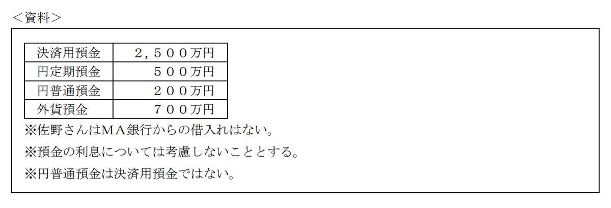 佐野さんは、預金保険制度の対象となるMA銀行の国内支店に下記<資料>の預金を預け入れている。仮に、MA銀行が破綻した場合、預金保険制度によって保護される金額に関する次の記述のうち、最も不適切なものはどれか。