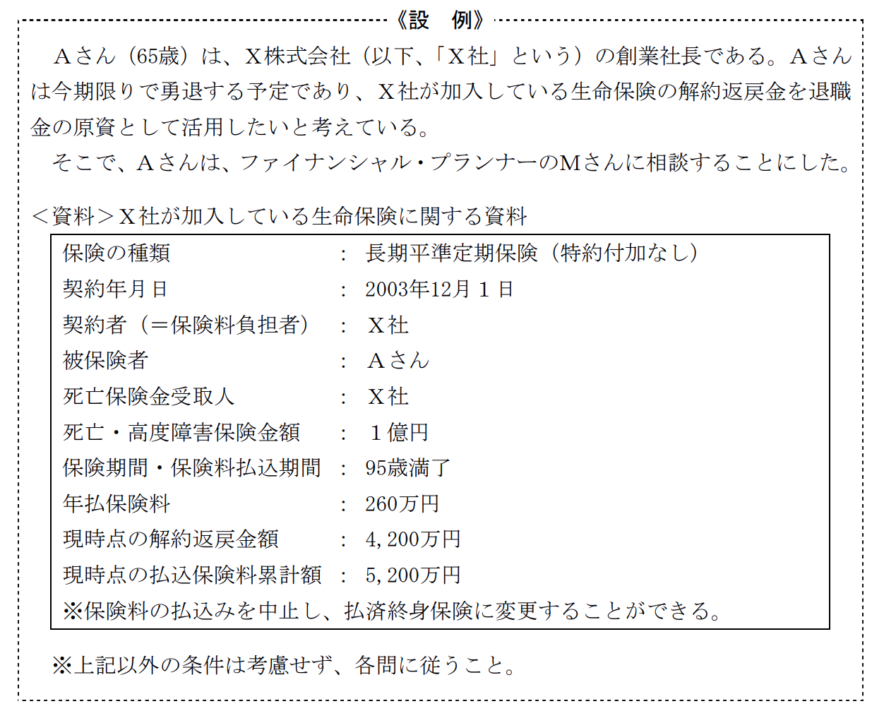 (FP試験 2023年9月 第8問 実技/保険顧客資産相談業務/生命保険)